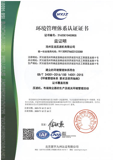 環境管理體系認證證書