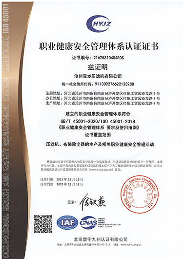 公司名稱:滄州亞龍壓濾機有限公司 公司地址:河北省南皮縣付莊工業開發區 電話:0317-8189922 傳真:0317-8189923 手機:13831723798 網址: