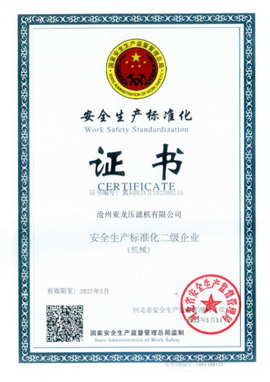 安全生產標準化證書