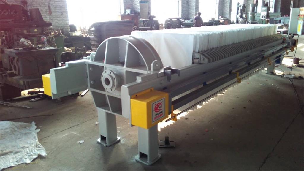 懸浮液用泵送入壓濾機的每個密閉的濾室,在工作壓力的作用下,濾液透過濾膜或其它濾材,經出液口排出,濾渣則留在框內形成濾餅,從而達到固液分離。