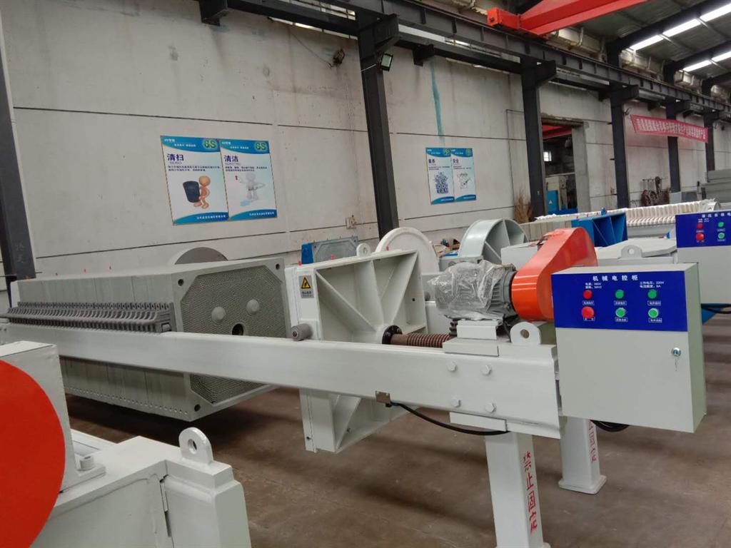 為了解決這個問題,好的措施是:濾板數_過80塊以上的板框壓濾機,其止推板應采用自由回轉的結構,對于濾板數較少的板框壓濾機,卸料時應注意減少濾板下部壓緊面上的殘留濾餅量,—旦濾板集合體呈明顯的梯形狀態,_應該沖洗濾板,將殘留濾餅清理干凈。