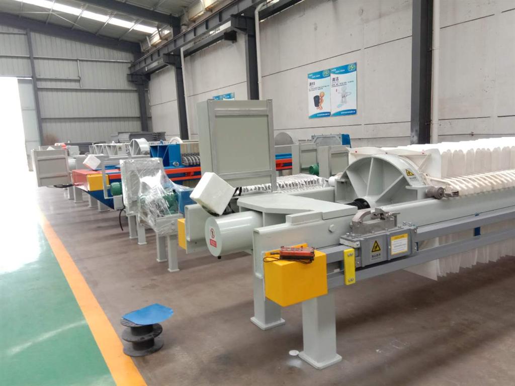 3、采用了雙拉板機構,提高了生產效率。該機采用雙拉板機構,一次可以拉開兩塊濾板,卸掉兩塊濾餅,清洗4塊濾布,從而減少了輔助作業時間,提高了生產效率。拉板機構采用往復式濾板移動器,拉板換向采用定力矩減速機,運行平穩,安全可靠,維修方便。